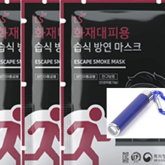 동행LS화재대피용 습식 방연마스크 3개 +후크링3개+거치케이스2개+비상용랜턴1개