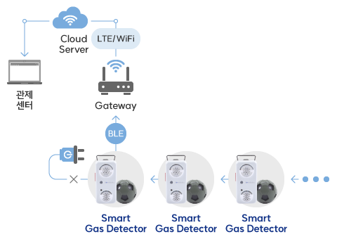 - 가스감지기 자체경보(발광, 음향, 진동)
