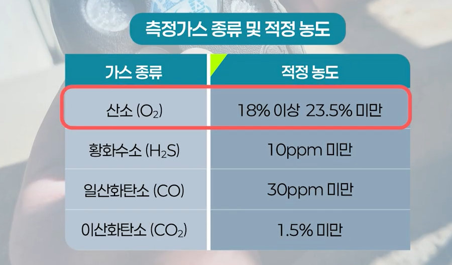 산소(O2) 일산화탄소(CO) 황화수소(H2S)