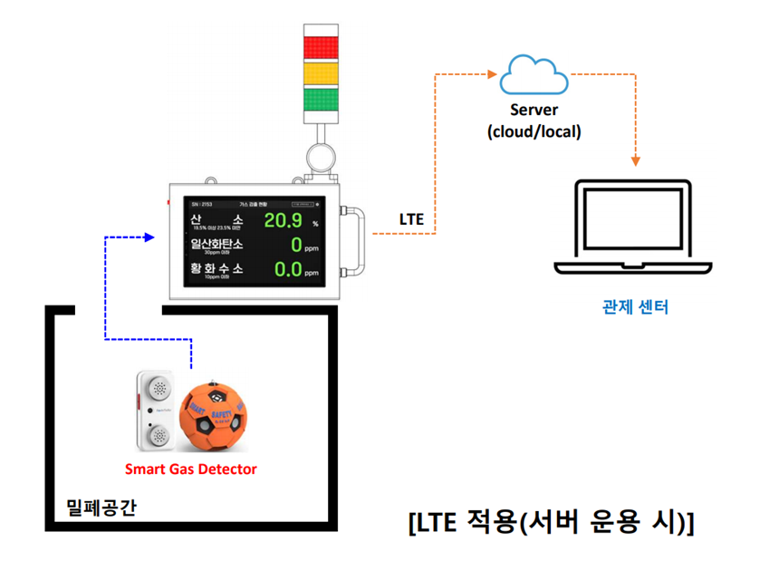 G-board 는 (주)노드톡스의 스마트 가스 감지기로부터 무선으로 전송되는 정보를 수신하여 가스 검출 정보를 보여주는