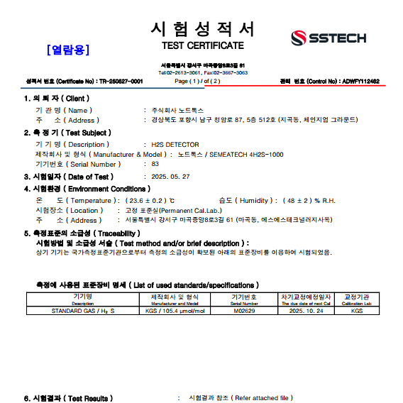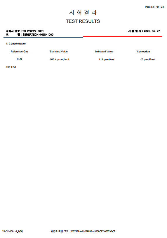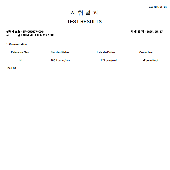 출고시 공인교정성적서발행 요청시 100,000/가스당 적용-부가세포함
